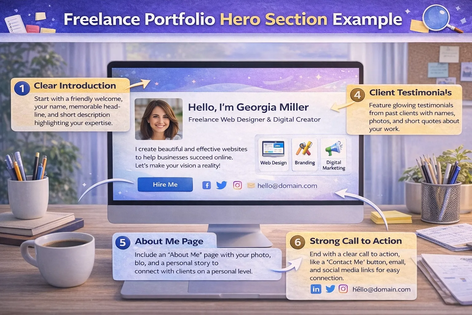 The hero section is the most important part of your portfolio. It determines whether a visitor stays or leaves.